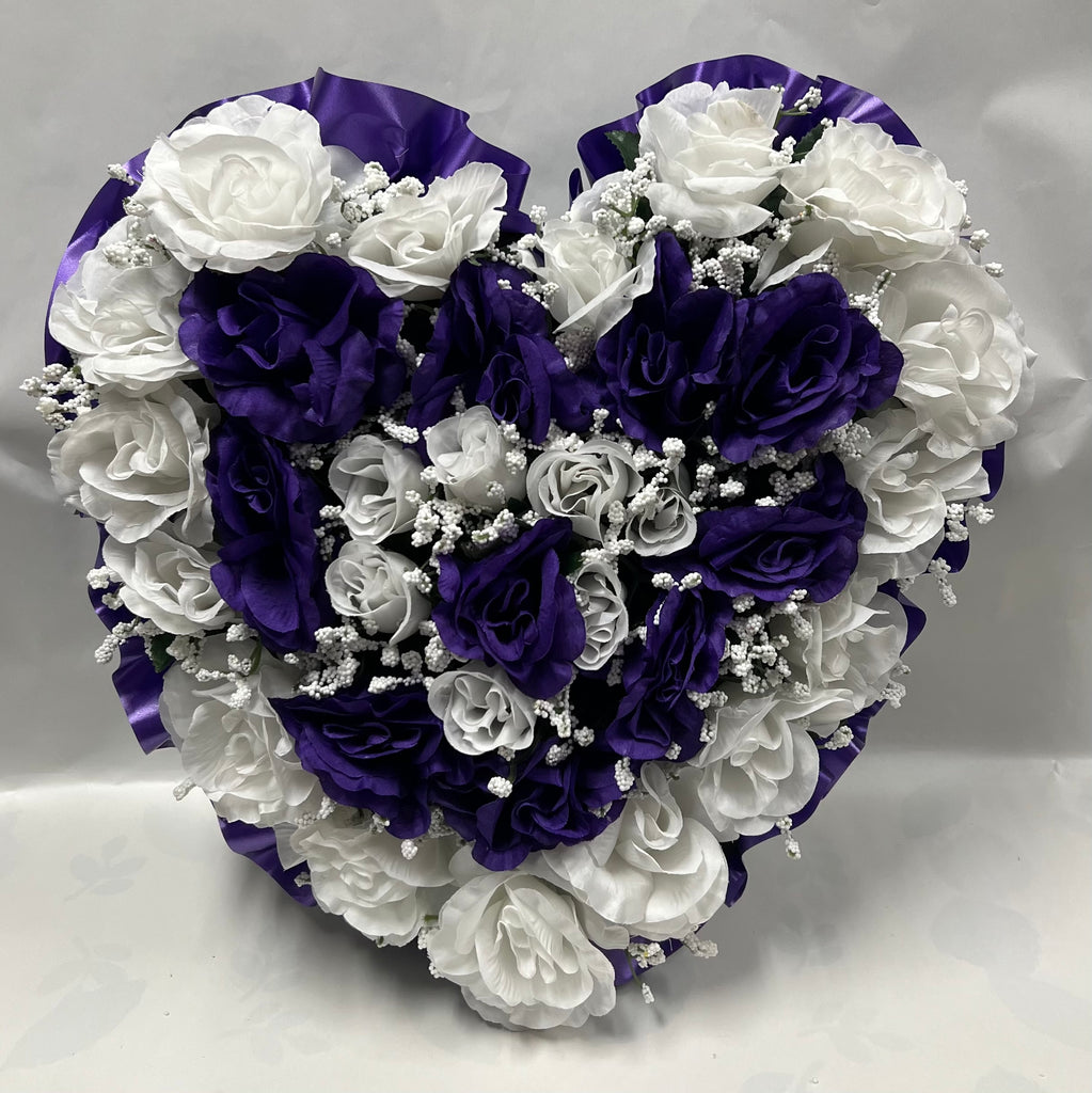 Artificial Memorial / Cemetery Wreath -Dark Purple and White