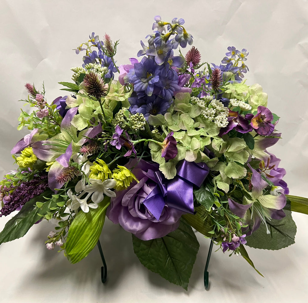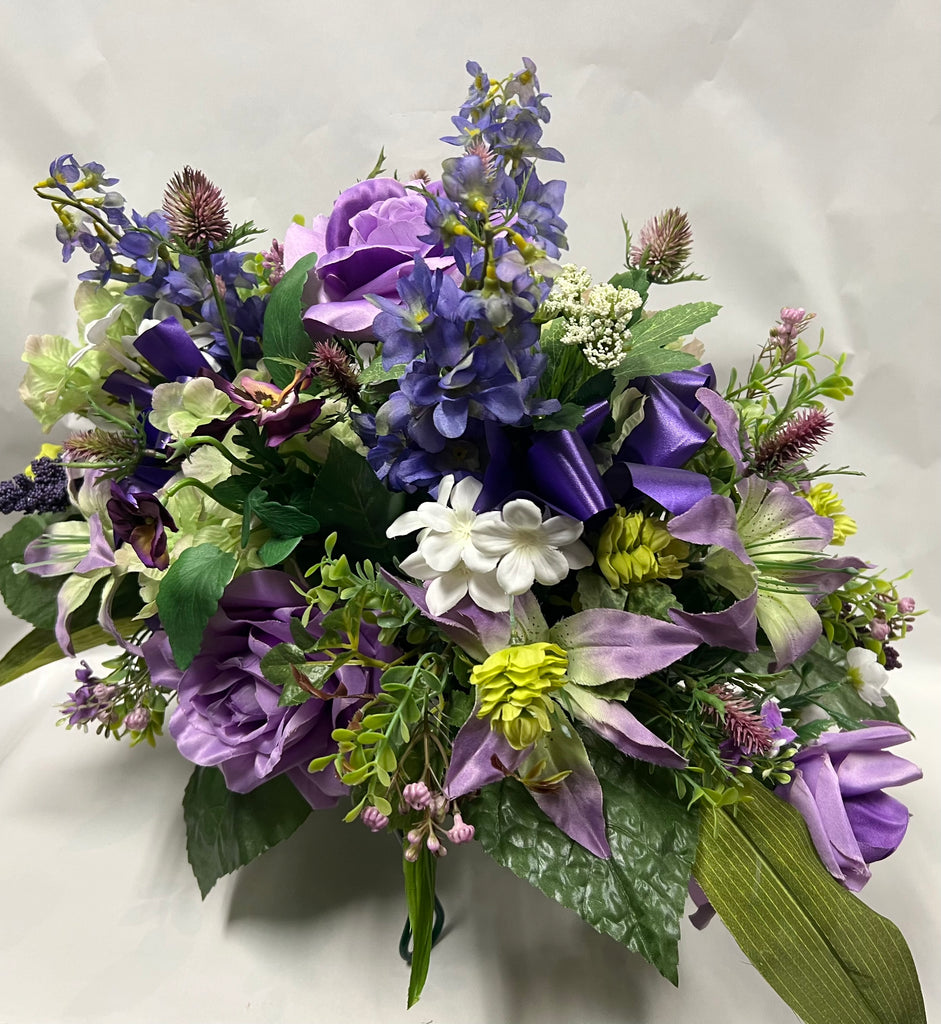 Roses, pansies, lilies, delphiniums, hydrangeas, thistles, hops, baby's breath, stephanotis and queen anne's lace