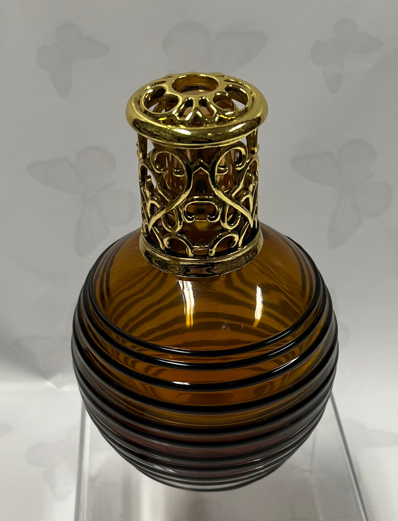 Brown/ black swirl glass fragrance lamp with gold accents