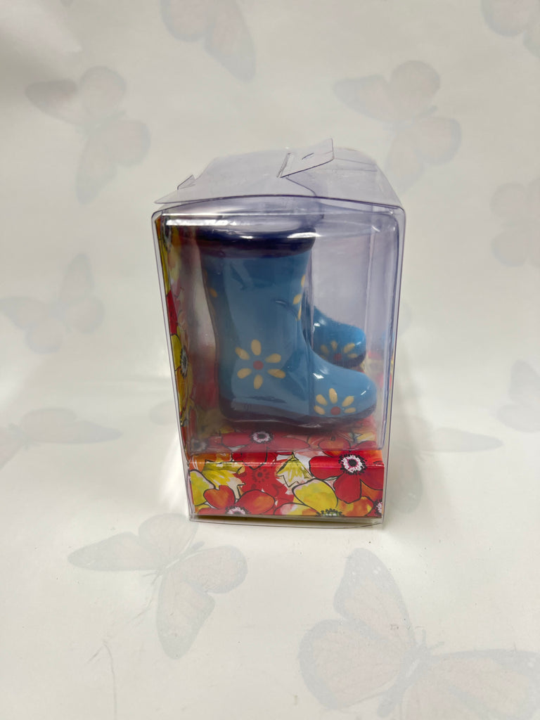 Ceramic mini rain boot shaped salt and pepper shaker set