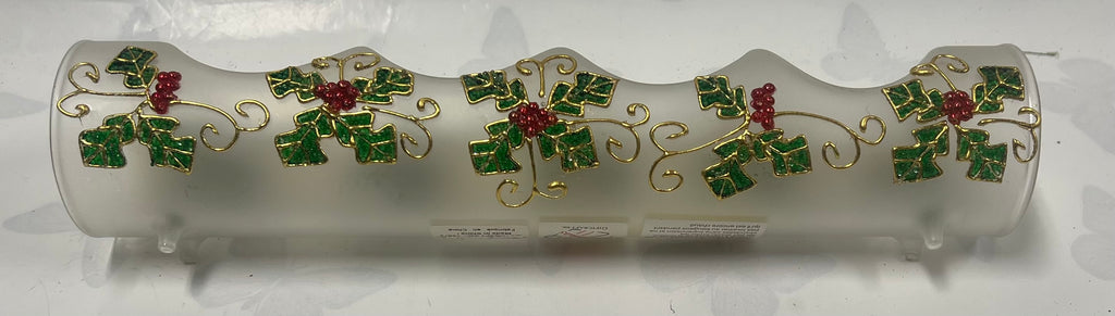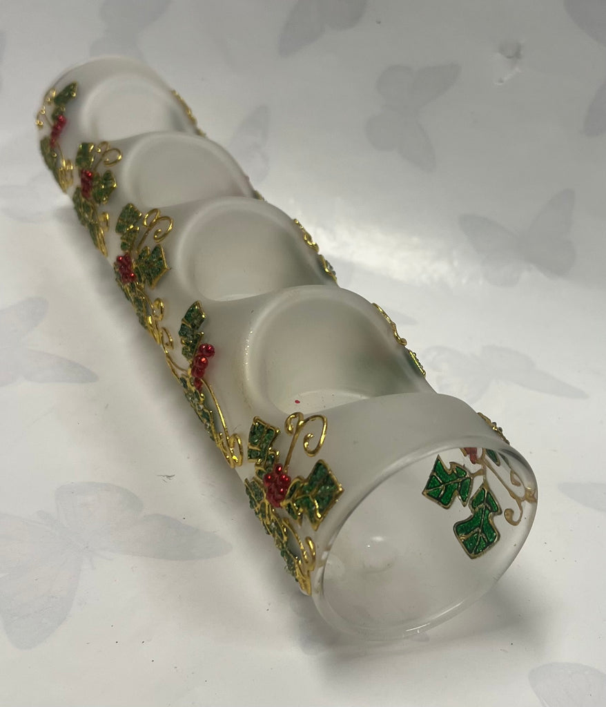Frosted glass holly tea light candle holder with gold accents